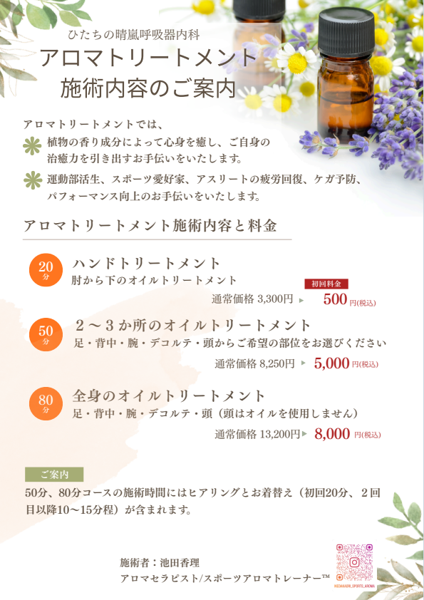 セラピストは、JAA認定アロマコーディネーター/アロマインストラクター/スポーツアロマトレーナー